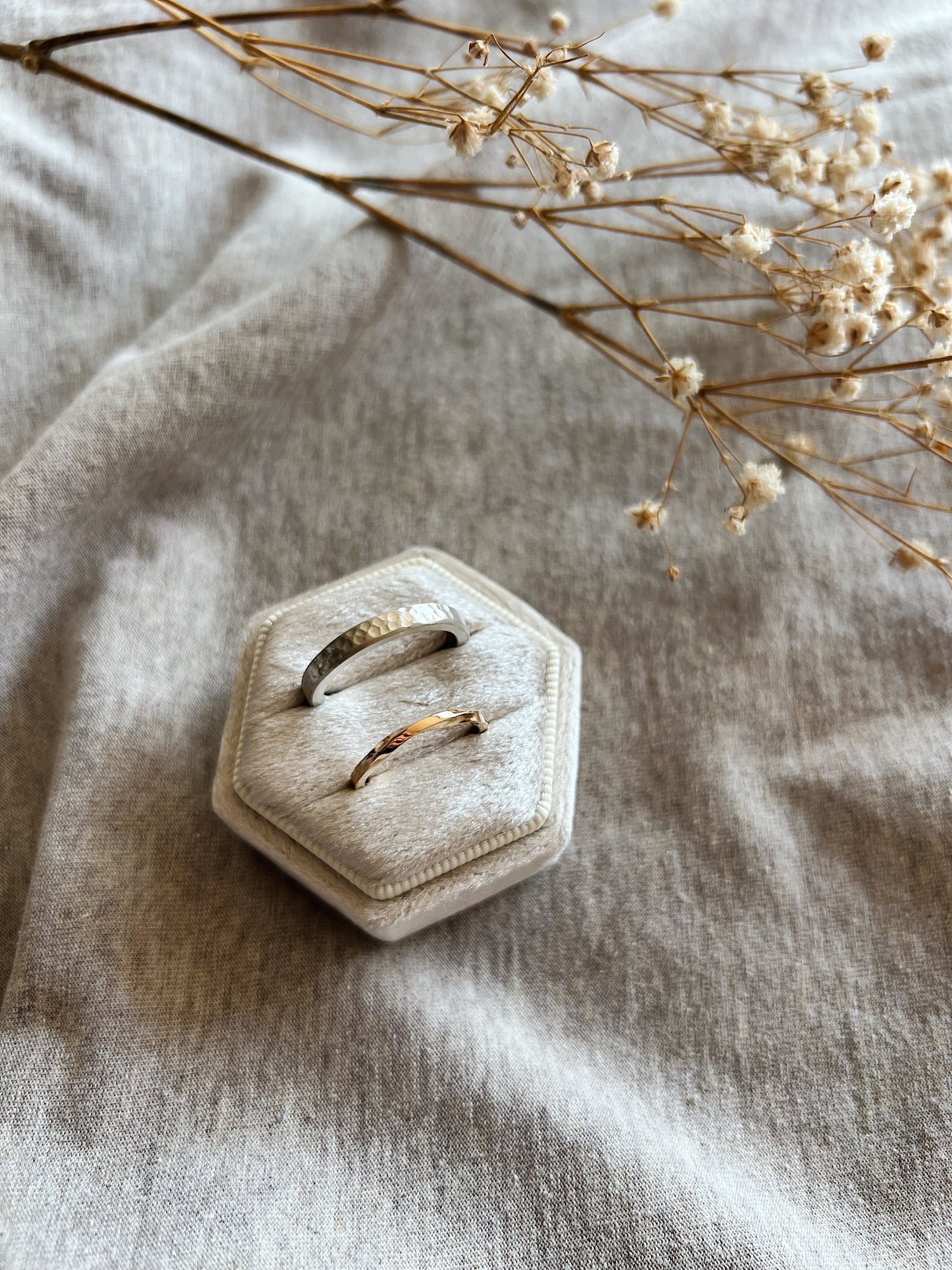 J'aime travailler les effets de matière, en jouant avec les outils dans mon atelier. Du martelé avec la bouterolle, au ciselé avec un forêt taillé sur mesure. Les possibilités sont multiples.